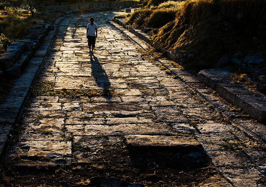 Reaching the temple from Panormos Port; Surrounded by sphinx, lion and sitting priest statues, this road is called the "Holy Way". The sacred road coming from Miletos Antique City, after Panormos, the port of Didyma, proceeds in the southeast direction for 3.5 km and ends at the entrance of the Temple of Apollo. The total length of the stone-paved road is approximately 17 km. Before coming to Didyma, there are two structures defined as "Anta Building" and "East Building" in a temenos located right next to the sacred road. On the sacred road, it belongs to the 6th century BC; sitting statues were found.
