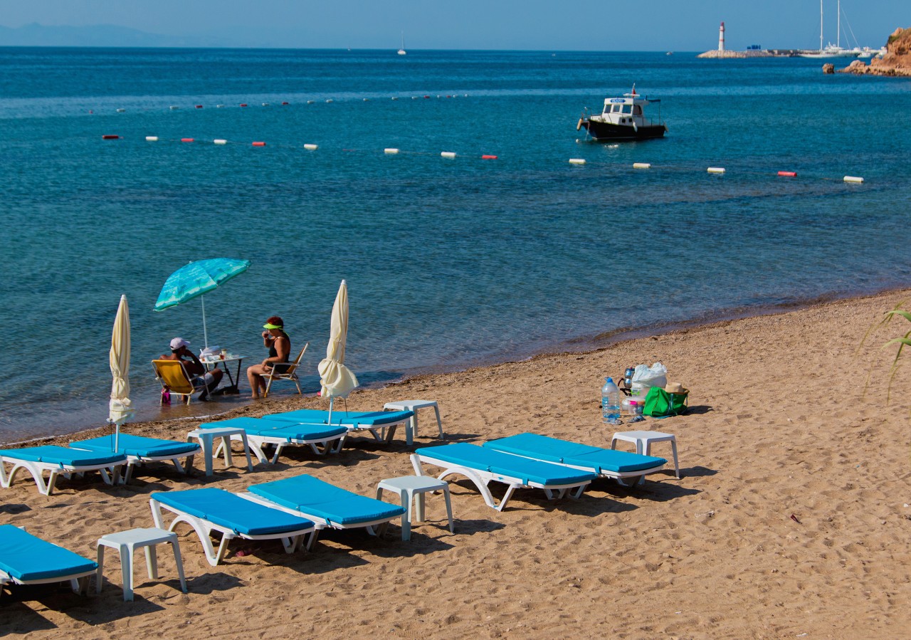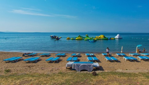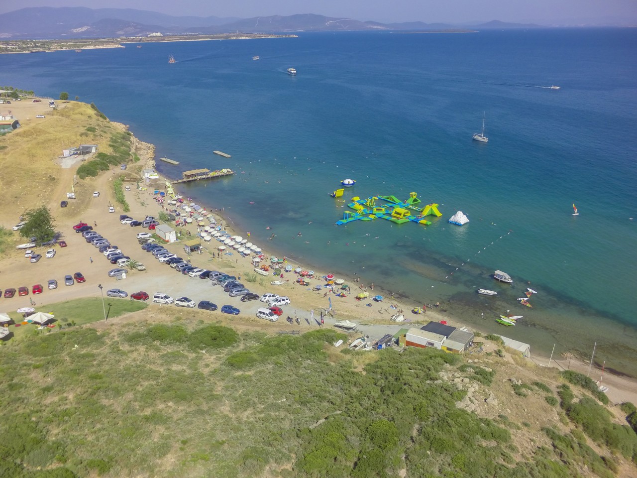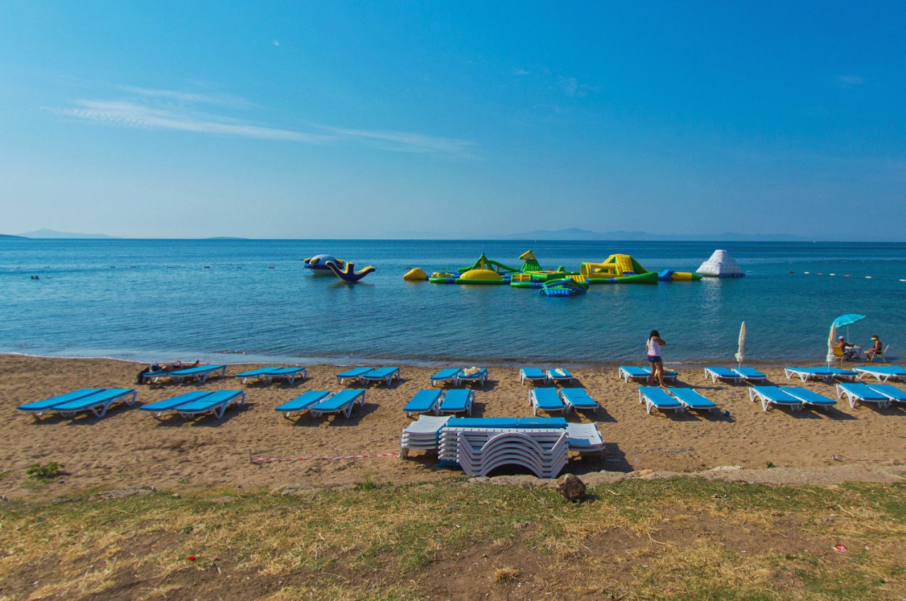 There are various activities in İkinci Bay, one of the most beautiful beaches of Didim. The Didim Amphitheatre leaning on the hill right behind the beach and the green area arrangement in front of it have the opportunity to have a pleasant time at any time of the day. There are two businesses on both sides of the bay where those interested in sailing and windsurfing can benefit and receive training. There are sun loungers and umbrellas belonging to a nearby hotel on the beach. There are showers, toilets and a cafe in the area. The beach has a blue flag.