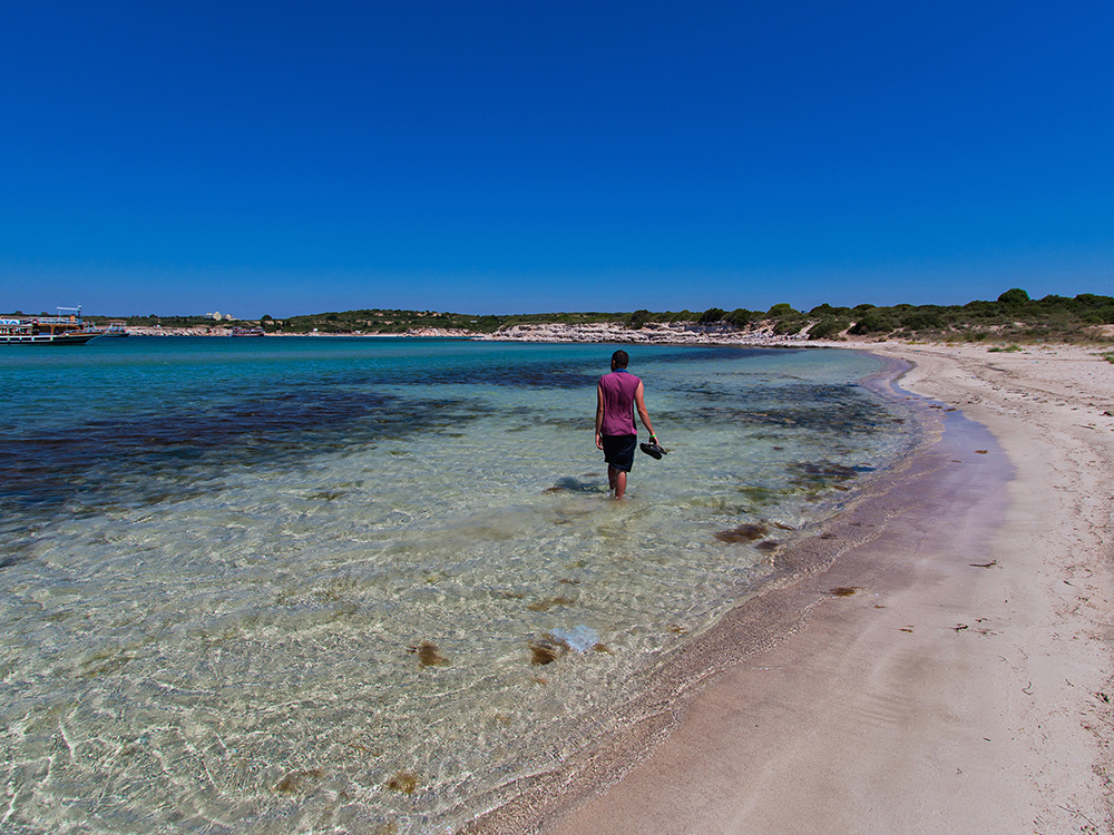 This wonderful bay is no longer in a military zone. Therefore, there are no obstacles for entry. You can enter with your car from the open iron gate on the dirt road coming from the Martı Site direction.